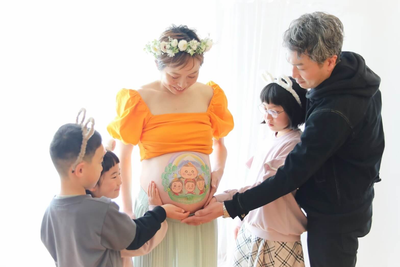 マタニティペイントを行うタイミングは、妊娠8〜9ヶ月(30〜36週頃)が最もおすすめです。この時期は体調が安定しやすく、お腹の丸みも美しく出るため、ペイントのデザインが映えます。